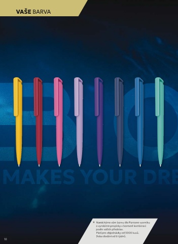 VAŠE BARVA * Namícháme vám barvu dle Pantone vzorníku a vyrobíme propisky v barevné kombinaci podle vašich představ. Platí pro objednávky od 5000 kusů. Doba dodání od 6 týdnů. 18